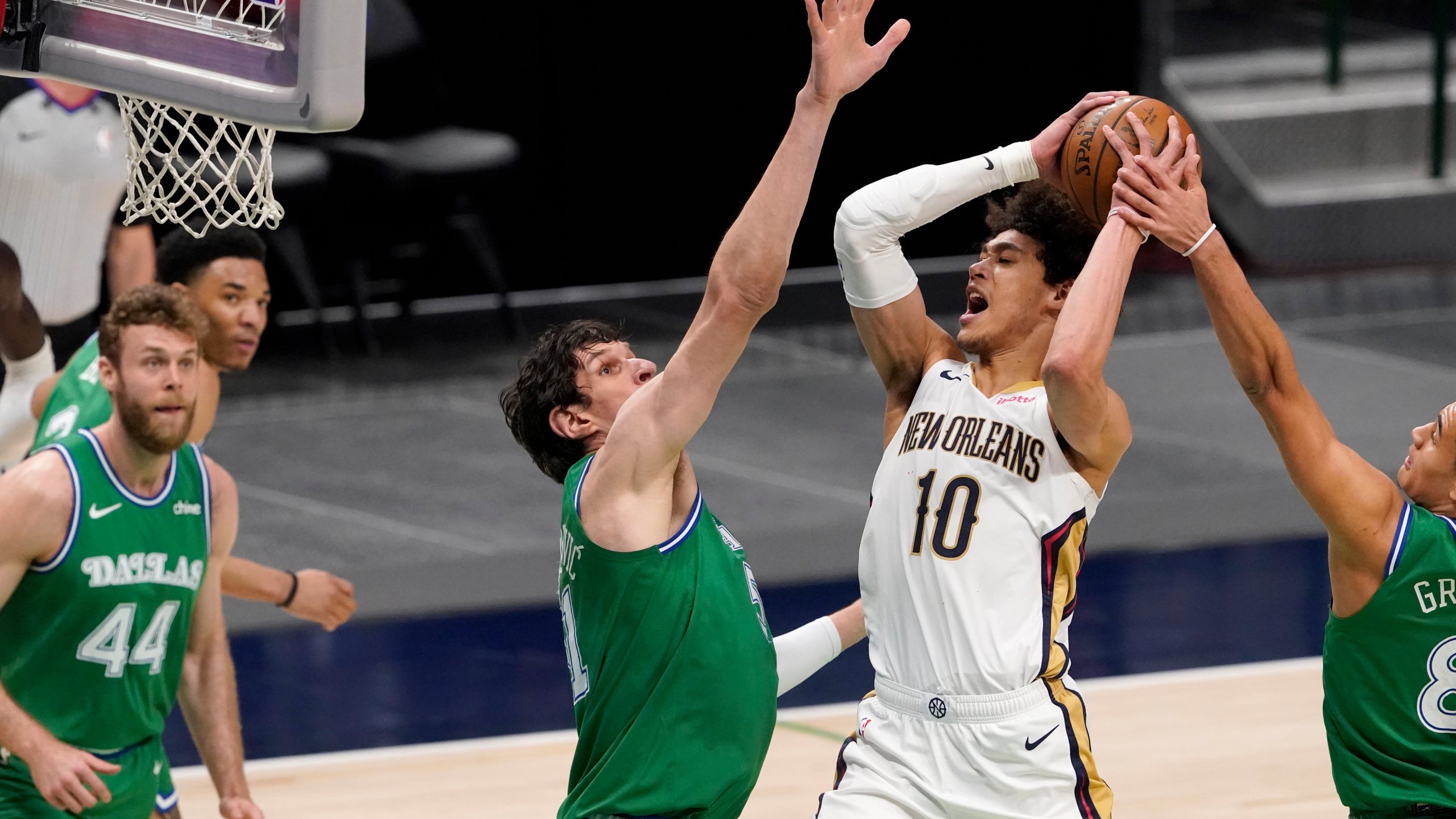 He's nimble with great body control, is a big vertical spacing threat off of one feet and two feet, is a very fluid athlete in transition, and has solid feet/hips.